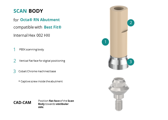 Scan Body for Octa® RN Abutment compatible with Best Fit® Internal Hex 002 HXI