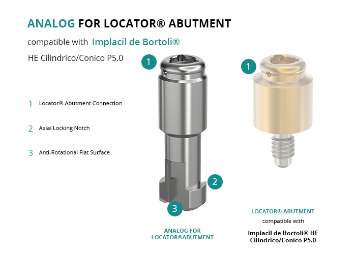 Analog for Locator® Abutment Compatible with Implacil de Bortoli® HE Cilindrico/Conico P5.0