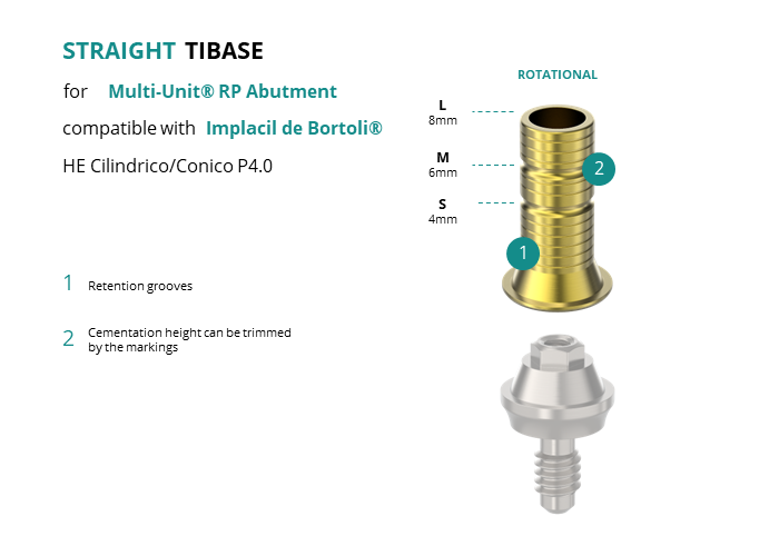 Titanium Straight Base for Multi-Unit® RP Abutment compatible with Implacil de Bortoli® HE Cilindrico/Conico P4.0