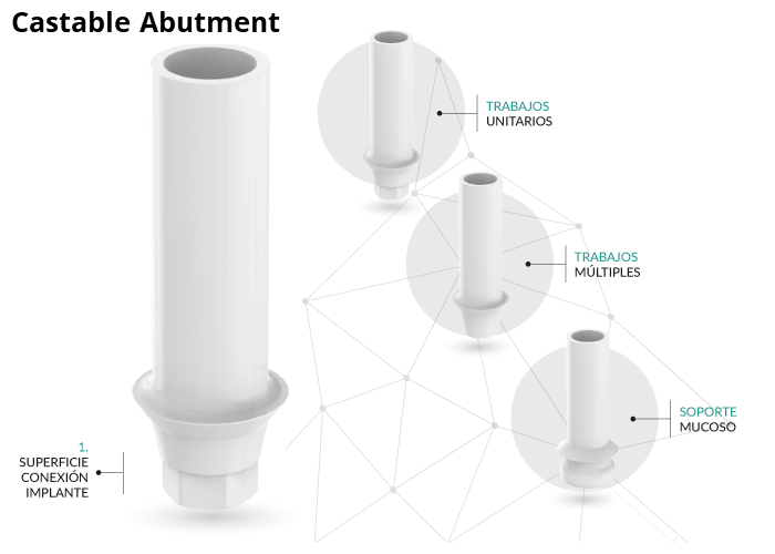 On the other hand, the connection of the Castable Abutment with the prosthetic structure is made through a casting process.