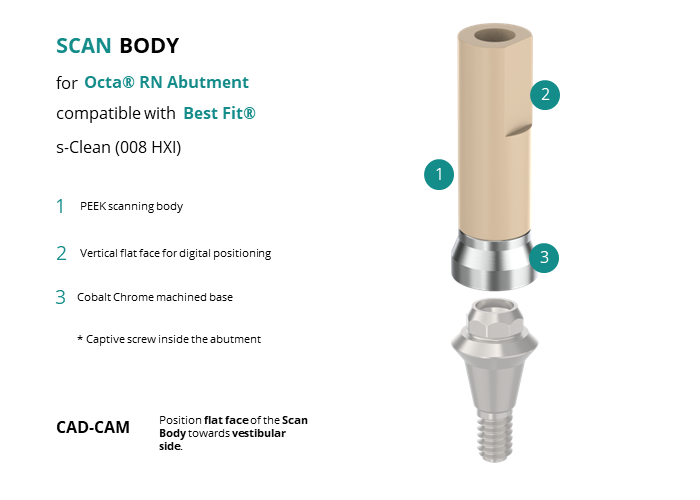 Scan Body for Octa® RN Abutment compatible with Best Fit® s-Clean (008 HXI)