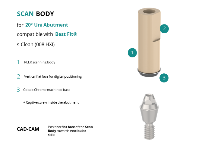 Scan Body for 20� Uni Abutment compatible with Best Fit® s-Clean (008 HXI)