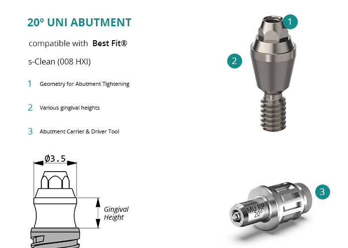 20º Uni Abutment compatible with Best Fit® s-Clean (008 HXI)