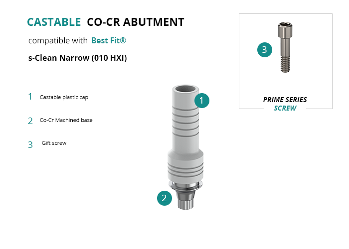 Castable Abutment with Co-Cr Base compatible with Best Fit® s-Clean Narrow (010 HXI)