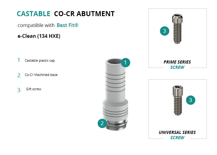 Castable Abutment with Co-Cr Base compatible with Best Fit® e-Clean (134 HXE)