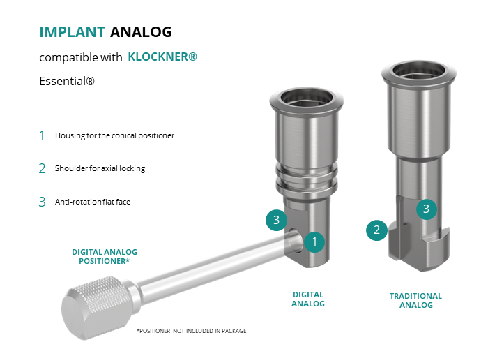 - Digital Analog: for models made of resin through 3D printing, locking is achieved using a slightly conical positioner, ensuring axial positioning.