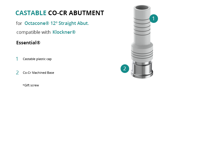 Castable Abutment with Co-Cr Base for Octacone® 12º Straight Abut. compatible with Klockner® Essential®