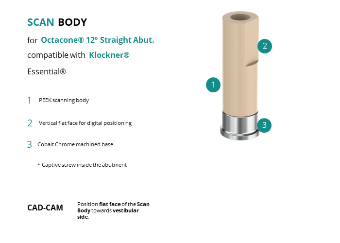 Scan Body for Octacone® 12� Straight Abut. compatible with Klockner® Essential®
