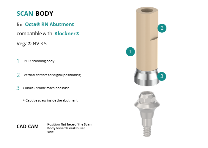 Scan Body for Octa® RN Abutment compatible with Klockner® Vega® NV 3.5