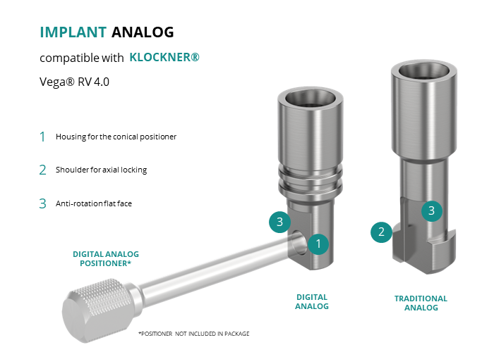 - Digital Analog: for models made of resin through 3D printing, locking is achieved using a slightly conical positioner, ensuring axial positioning.