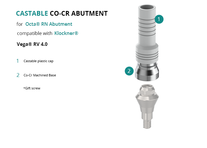Castable Abutment with Co-Cr Base for Octa® RN Abutment compatible with Klockner® Vega® RV 4.0