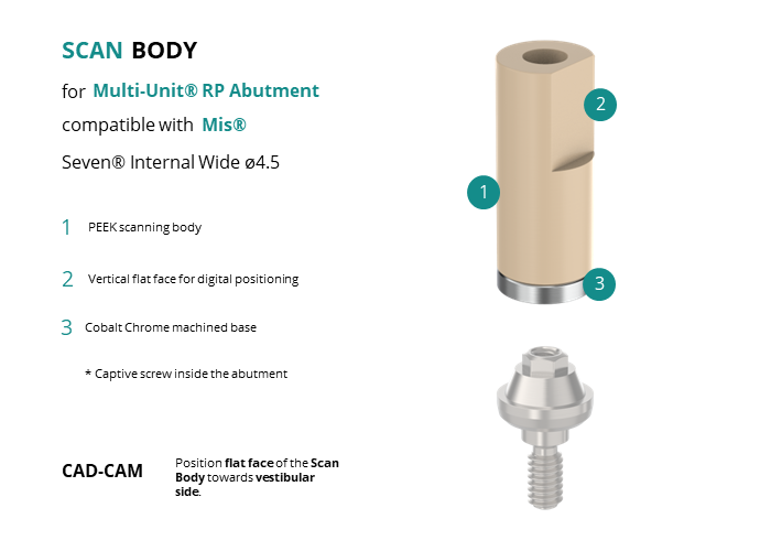 Scan Body for Multi-Unit® RP Abutment compatible with Mis® Seven® Internal Wide Ø4.5