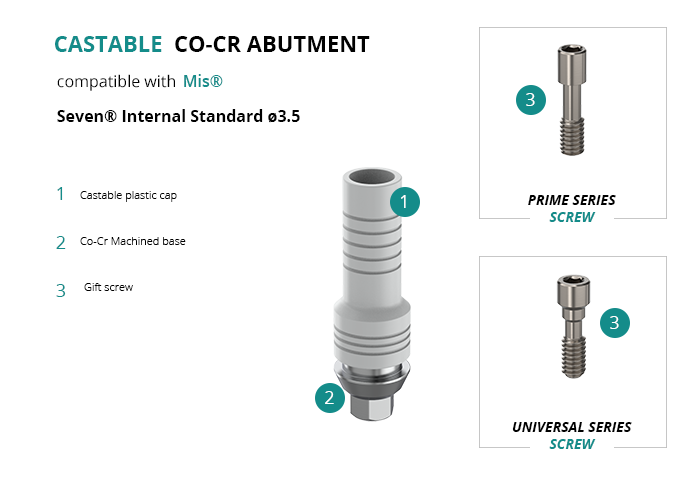 Castable Abutment with Co-Cr Base compatible with Mis® Seven® Internal Standard Ø3.5