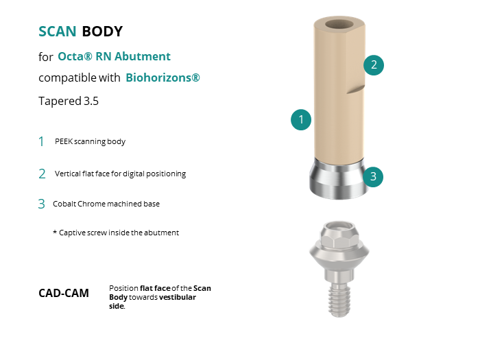 Scan Body for Octa® RN Abutment compatible with Biohorizons® Tapered 3.5