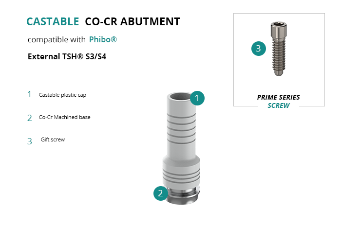 Castable Abutment with Co-Cr Base compatible with Phibo® External TSH® S3/S4