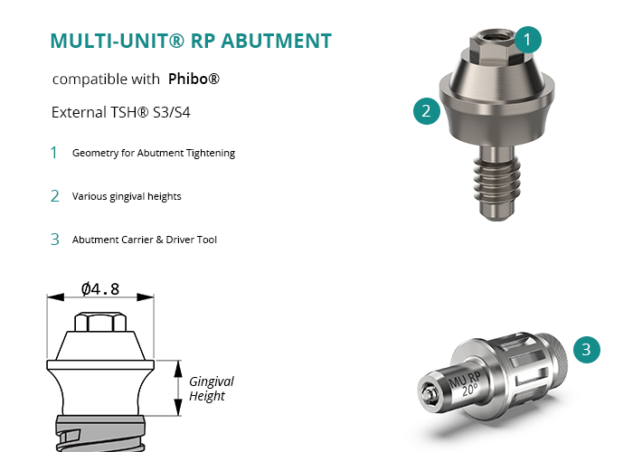 Multi-Unit® RP Abutment compatible with Phibo® External TSH® S3/S4
