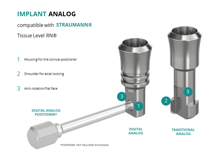 - Digital Analog: for models made of resin through 3D printing, locking is achieved using a slightly conical positioner, ensuring axial positioning.