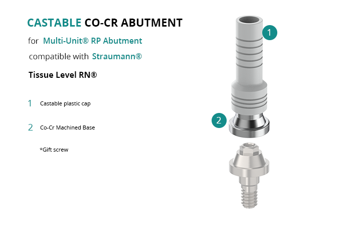 Castable Abutment with Co-Cr Base for Multi-Unit® RP Abutment compatible with Straumann® Tissue Level RN®