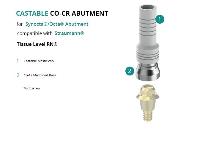Castable Abutment with Co-Cr Base for Synocta®/Octa® Abutment compatible with Straumann® Tissue Level RN®