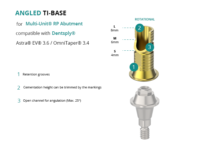 Angled Titanium Base for Multi-Unit® RP Abutment compatible with Dentsply® Astra® EV® 3.6 / OmniTaper® 3.4