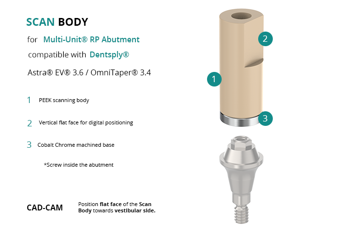 Scan Body for Multi-Unit® RP Abutment compatible with Dentsply® Astra® EV® 3.6 / OmniTaper® 3.4