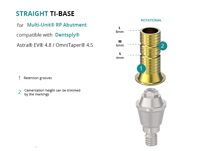 Titanium Straight Base for Multi-Unit® RP Abutment compatible with Dentsply® Astra® EV® 4.8 / OmniTaper® 4.5