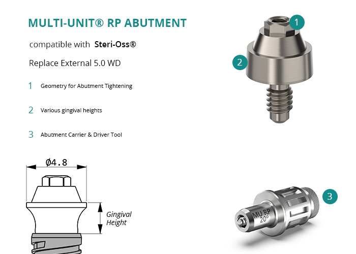 Multi-Unit® RP Abutment compatible with Steri-Oss® Replace External 5.0 WD