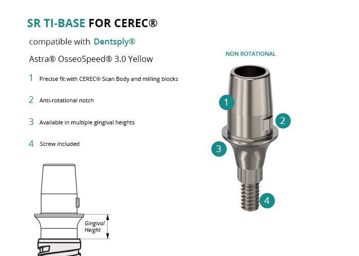 SR Titanium Base for CEREC® compatible with Dentsply® Astra® OsseoSpeed® 3.0 Yellow