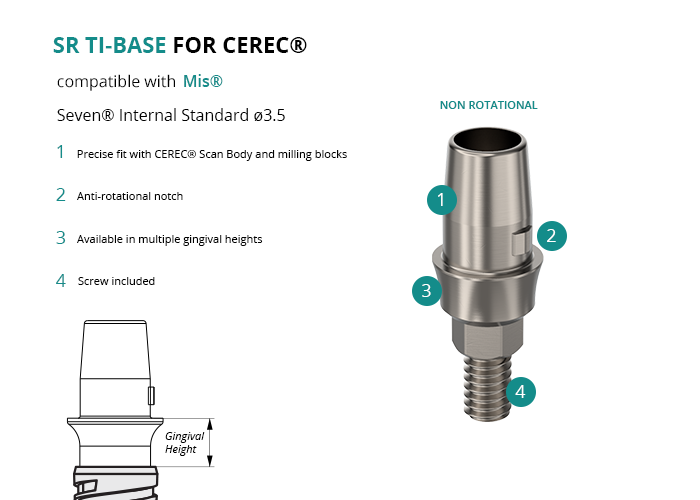 SR Titanium Base for CEREC® compatible with Mis® Seven® Internal Standard Ø3.5