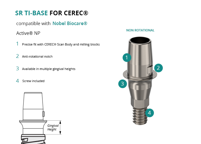 SR Titanium Base for CEREC® compatible with Nobel Biocare® Active® NP