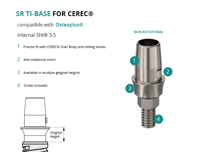 SR Titanium Base for CEREC® compatible with Osteoplus® Internal SHi® 3.5