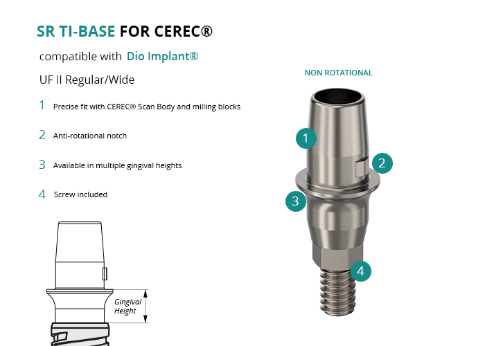SR Titanium Base for CEREC® compatible with Dio Implant® UF II Regular/Wide