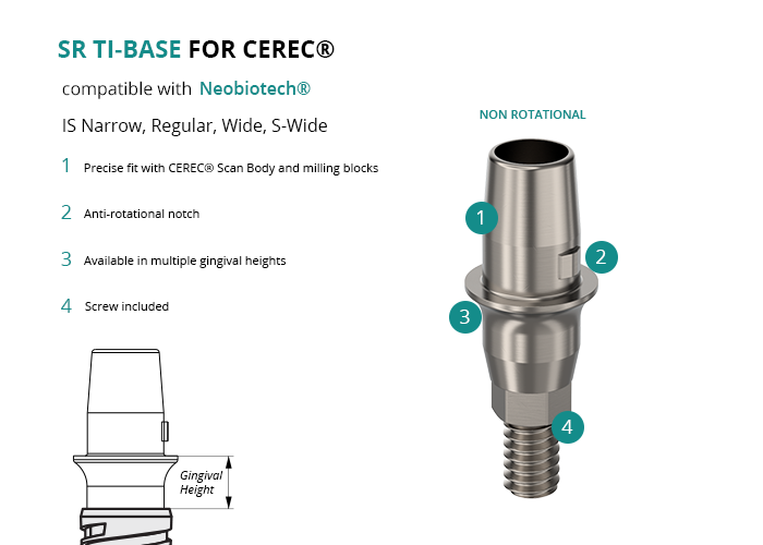 SR Titanium Base for CEREC® compatible with Neobiotech® IS Narrow, Regular, Wide, S-Wide