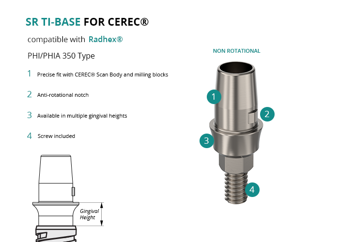 SR Titanium Base for CEREC® compatible with Radhex® PHI/PHIA 350 Type