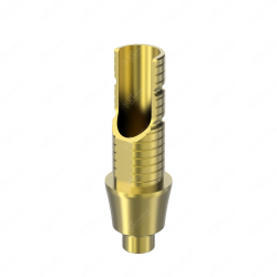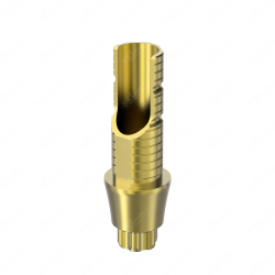 GT-Medical's Angled Ti-Base are compatible with Aurea® Evo NP implants from Phibo®, ensuring a stable and long-lasting connection between the implant and the prosthesis, while also allowing angulations to be corrected up to 25 degrees. They are made entirely of Titanium Grade 5 with a yellow anodizing for a more aesthetic finish. They have a cementation trunk that can be cut to various heights with an open channel to allow angulation, 3 flat faces to perform the anti-rotating function and a gingival body of various heights, depending on the type of connection.