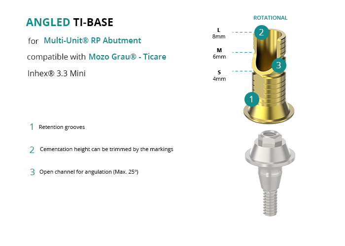 Angled Titanium Base for Multi-Unit® RP Abutment compatible with Mozo Grau® - Ticare Inhex® 3.3 Mini