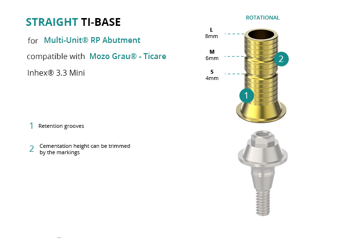 Titanium Straight Base for Multi-Unit® RP Abutment compatible with Mozo Grau® - Ticare Inhex® 3.3 Mini