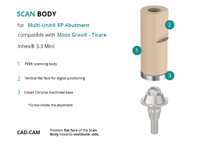 Scan Body for Multi-Unit® RP Abutment compatible with Mozo Grau® - Ticare Inhex® 3.3 Mini