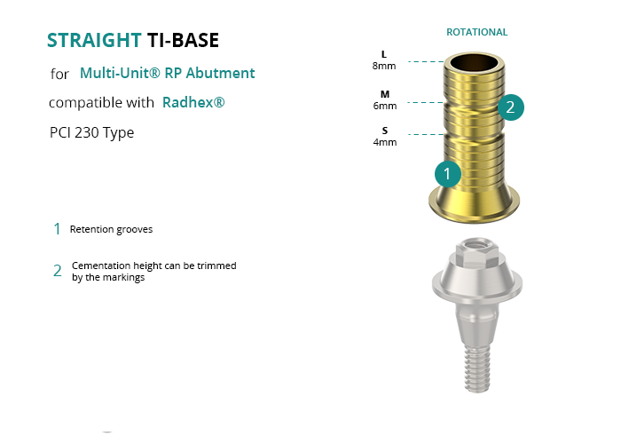 Titanium Straight Base for Multi-Unit® RP Abutment compatible with Radhex® PCI 230 Type