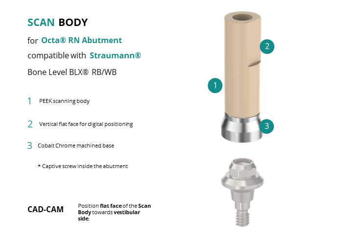 Scan Body for Octa® RN Abutment compatible with Straumann® Bone Level BLX® RB/WB