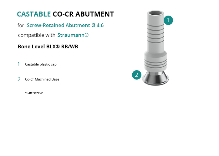 Castable Abutment with Co-Cr Base for Screw-Retained Abutment Ø 4.6 compatible with Straumann® Bone Level BLX® RB/WB