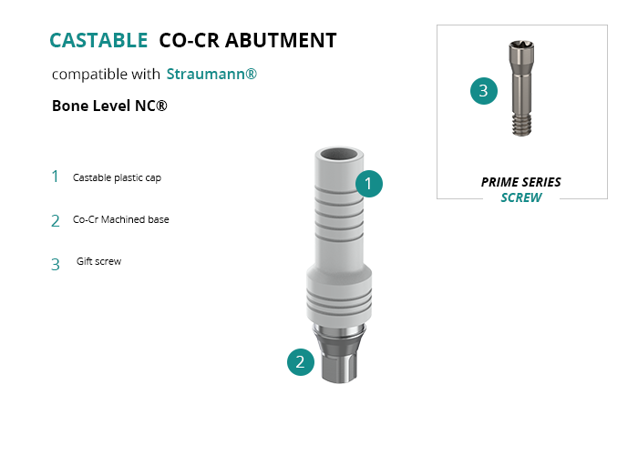 Castable Abutment with Co-Cr Base compatible with Straumann® Bone Level NC®