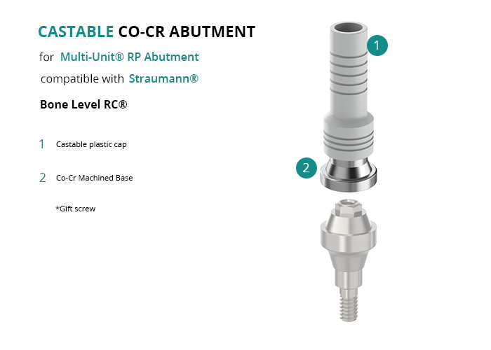 Castable Abutment with Co-Cr Base for Multi-Unit® RP Abutment compatible with Straumann® Bone Level RC®
