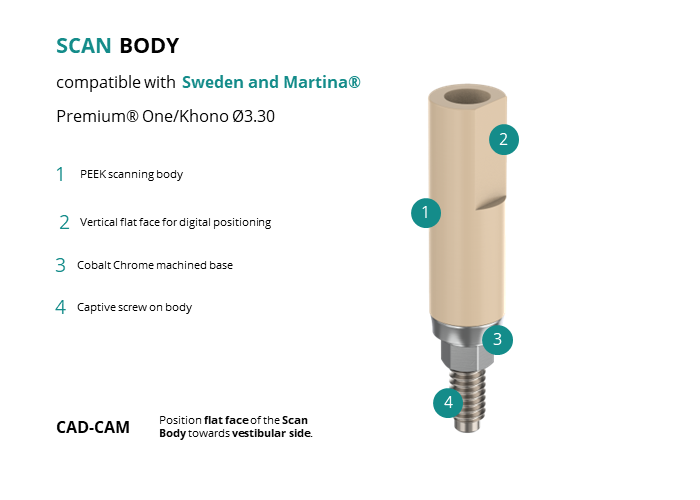 Scan Body compatible with Sweden and Martina® Premium® One/Khono Ø3.30