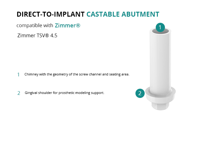 Direct-to-Implant Castable Compatible with Zimmer® Zimmer TSV® 4.5