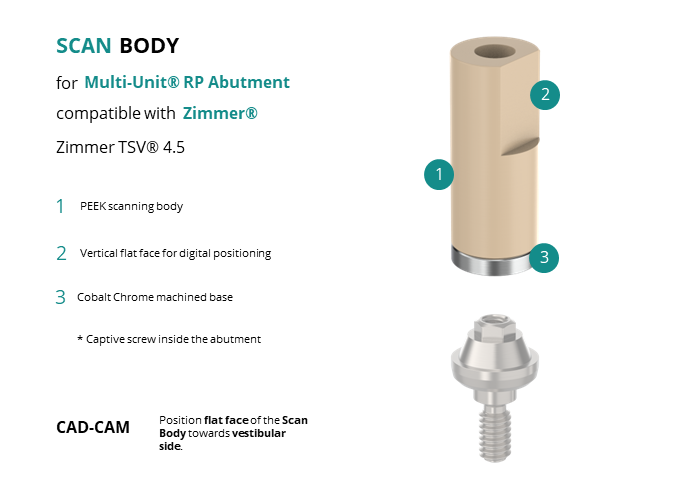 Scan Body for Multi-Unit® RP Abutment compatible with Zimmer® Zimmer TSV® 4.5