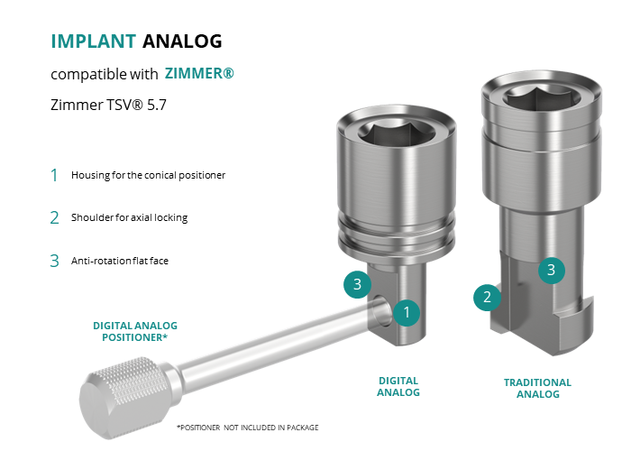 - Digital Analog: for models made of resin through 3D printing, locking is achieved using a slightly conical positioner, ensuring axial positioning.
