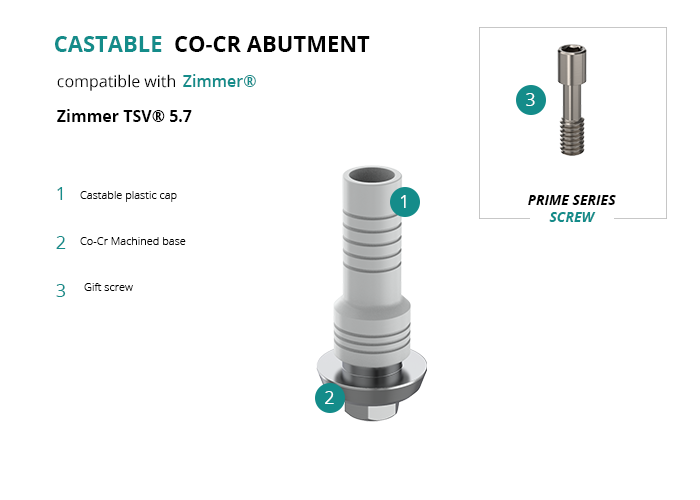 Castable Abutment with Co-Cr Base compatible with Zimmer® Zimmer TSV® 5.7