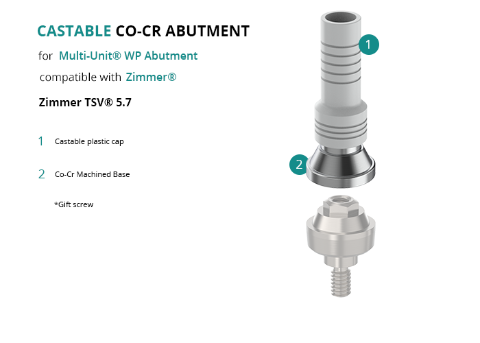 Castable Abutment with Co-Cr Base for Multi-Unit® WP Abutment compatible with Zimmer® Zimmer TSV® 5.7