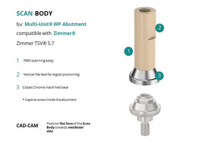 Scan Body for Multi-Unit® WP Abutment compatible with Zimmer® Zimmer TSV® 5.7